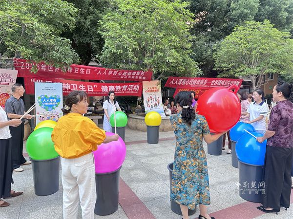 荆楚网(湖北日报网)讯(记者 李燕 通讯员 孙琳 陈海生)10月10日,武汉市武东医院携手东湖风景区公共卫生服务中心走进东湖新城社区,举办“人人享有心理健康服务——2025世界精神卫生日社区公益行”主题宣传活动,线上线下同频互动,荆楚网直播吸引超30万人次观看,网友留言点赞“有趣又治愈”,收获满满好心“晴”。