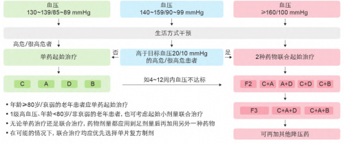 • 应根据血压水平和心血管风险选择初始单药或联合治疗。