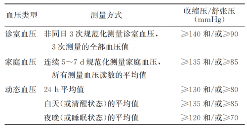 图:基于诊室血压、家庭血压和动态血压的高血压诊断标准